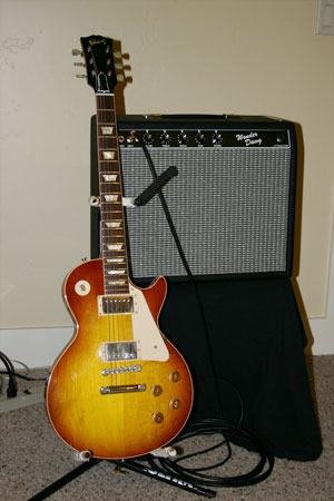 The last few Friday’s a drummer friend of mine has been coming by and we’ve been jamming and writing  in my families music studio. He’s got a very subtle touch, real tasty chops and we’ve been goofin’ with some different styles. One Friday things took a kind of old Fleetwood Mac track, and my LP through the Wonderdawg  really hit the Peter Green vibe on the mark. When we were done that day we both were kind of amazed at how great the amp sounded with the LP. The guitar straight into the amp with the amp volume around 4 and I hadn’t noticed that I’d kept my guitar volume around 5 the whole time. One thing I dig allot about Peter Greens old FM work is his subtle style, almost “conversational”, going from calm to excited, highs and lows, like listening to someone tell you a story. I’ve been a Les Paul player since I got my first one in 1973 and as LP players know, it gives a player the ability to be very expressive, but without the right amp, you can only get so far.